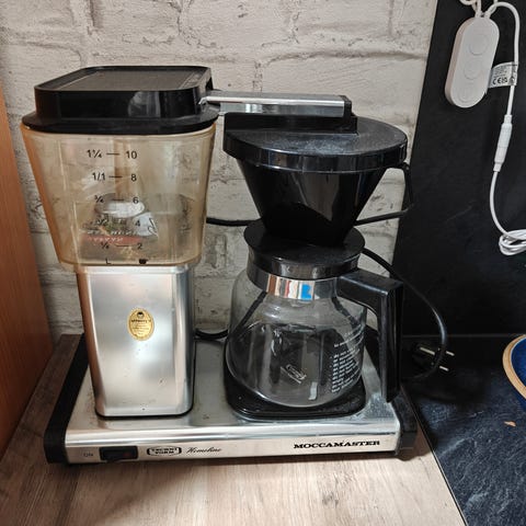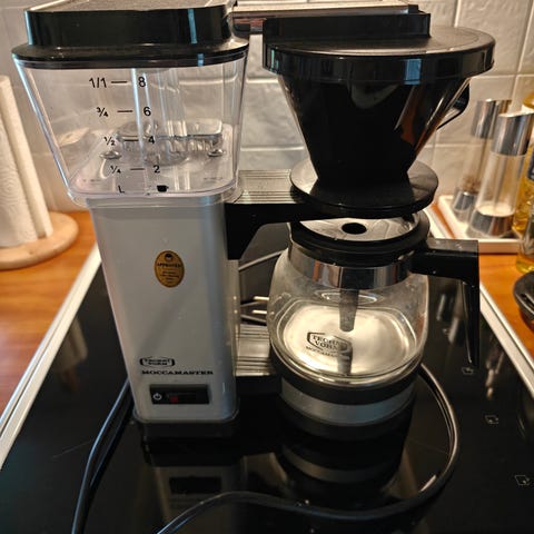 Kuvien mukainen moccamaster tippalukolla. Kun vedet laittaa keittimeen sisään ja virrat päälle, ei lähde kahvi valmistumaan, eli moottori ei käynnisty. Muuten ehjä keitin. Levy lämpenee ja muut osat ovat ehjät. Varaosiksi tai korjattavaksi.