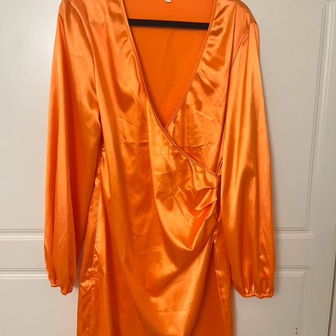 Mekko on läpinäkyvä, hyväkuntoinen. Olisiko jotain ”silkki organzaa”. Laput poistettu.
