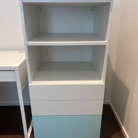 Palapelin näköinen hylly esim. lastenhuoneeseen. Leveys noin 63cm, korkeus noin 97cm ja syvyys noin 30cm. Pientä käytön jälkeä ja pahin kahvikupin(?) jättämä rinkula ylähyllyssä.