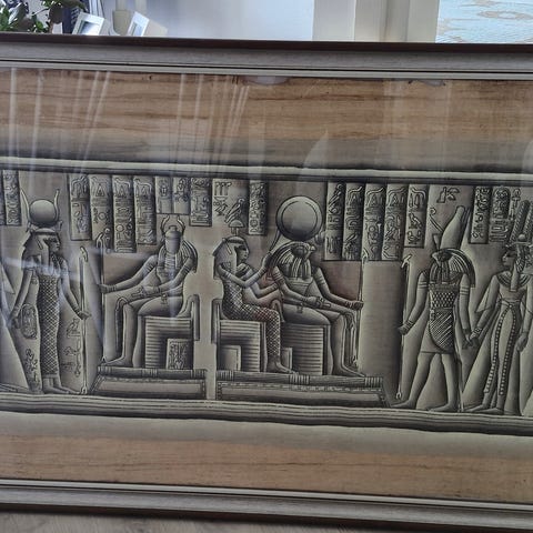 Kaksi Egyptin papyrysta, koko 35 x 28 cm ja toinen 28 x 40 cm. Hyvässä kunnossa