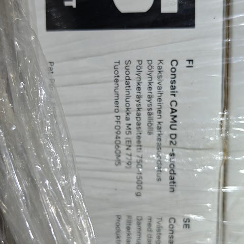 Avaamattomassa pakkauksessa on kolme suodatinta ja suodattimen Ø 125 mm.