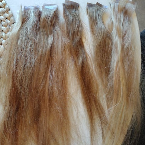 Myydään teippipidennykset, aitoa hiusta, tilattu kampaajan kautta, 30 cm, vaaleat, 20 osiota