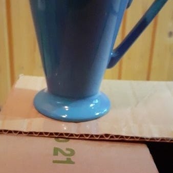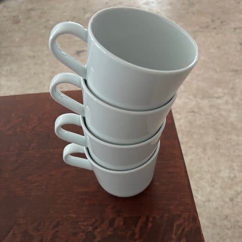 Käytettyjä kahvimukeja. Yhdestä pieni pala lohjennut, mikä näkyy kuvassa.