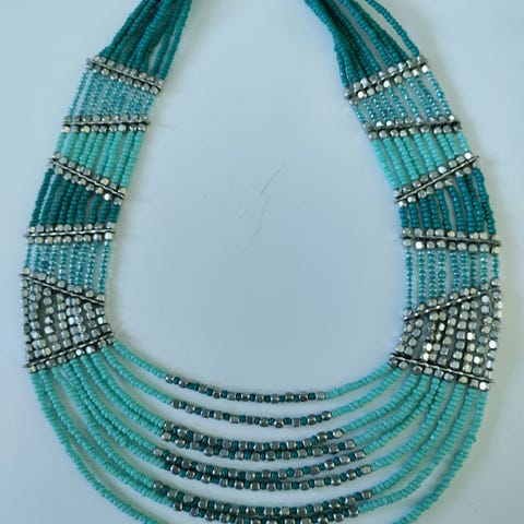 Uudenveroinen kaulakoru. Rihkamaa. Pituus noin 54 cm.