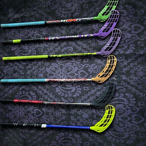 6kpl ylimääräisiä salibandy mailoja.