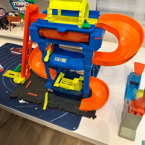 Hot Wheels -autopesulassa on vilskettä! Nosta auto hissillä kolmanteen kerrokseen ja pyöritä pesutunnelia, joka saa auton värin vaihtumaan. Rullaile ramppia alas ja dippaa auto veteen, niin se vaihtaa värin takaisin. Sis. 1 väriä vaihtava auto. 3+