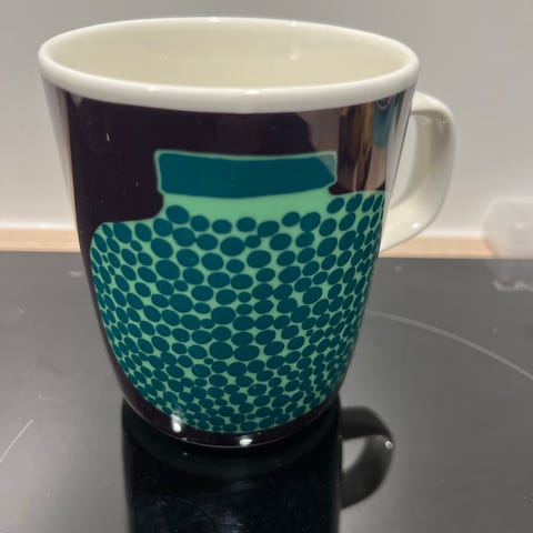 Marimekko "Purnukka" mukit 2 kpl, korkeus 9cm, halkaisija 7,5cm ja tilavuus 2,5dl.