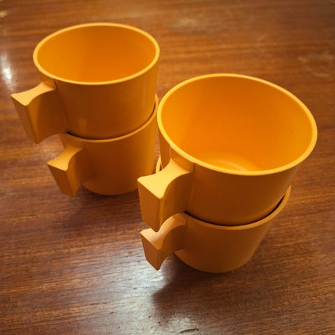 Taitaa olla jo antiikkia 1950-1960 luvulta. Mukin reunassa lukee: AAMULLA JA ILLALLA PESEN HAMPAAT HUOLELLA. Ei juurikaan käytön jälkiä. Korkeus n.8½cm ja suun halkaisija n.7cm. Harvinaisuuden ja hyvän kunnon vuoksi hinta 15e+pk.