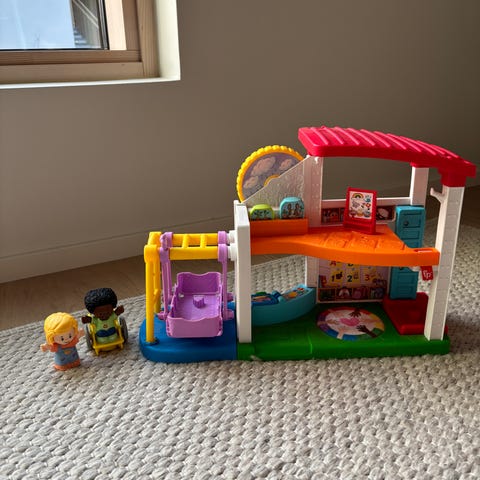 Little People -koulussa opiskellaan ja leikitään yhdessä! Kaksikerroksisesta koulusta löytyy hauska keinu, hissi ja pieni puutarha, jossa voi kastella kukkasia ja pyörittää sääpyörää. Koko 42 x 27 cm. Sis. koulun, 2 hahmoa ja 2 tarviketta. 1+