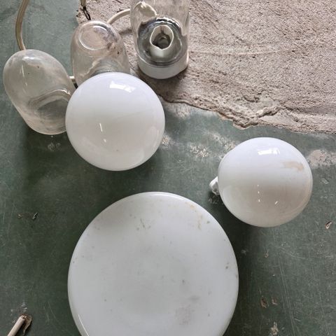 Myydään vanhoja varaston katossa olleita valaisimia lasikuvulla. Yhteen olen kiinnittänyt kaapelin ja ollut pöytävalaisimena. Muihinkin voin asentaa tarvittassa korvausta vastaan. Hinta per kappale.