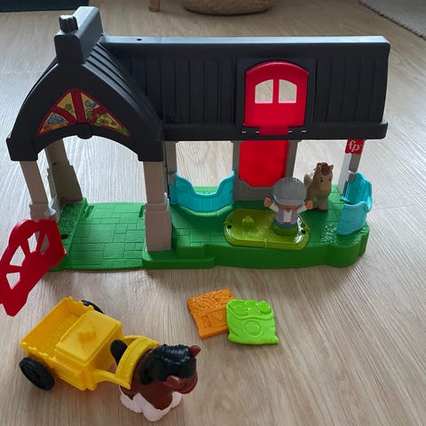 Little People -hevostallilla hoidetaan hevosia ja ratsastetaan. Talissa on kivoja leikistä aktivoituvia toimintoja. Leikkisetti sisältää hevostallin, hahmon ja kaksi hevosta, vaunut ja kaksi tarviketta. Tallin koko 40 x 28 cm. 1+