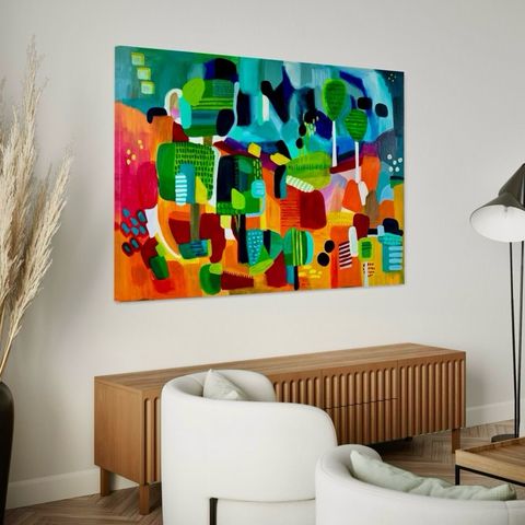 Kooltaan 65 x 90 cm, tämä teos tuo väriä ja luonnetta mihin tahansa tilaan. Minulle se on päivittäinen muistutus siitä ilosta, rauhasta ja läsnäolosta, jonka eläimet tuovat elämäämme.
