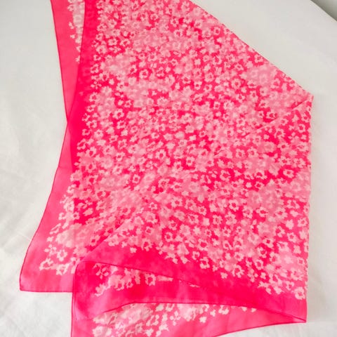 Keltainen violetti liila lila vihreä värikäs kirjava kaulahuivi liina kaulaliina huivi sifonki shifonki