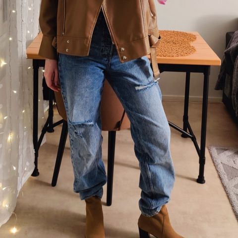 Great for summer festivals. Stretchy denim and super comfortable material. Size medium. I am size 36/S and they are indeed bit loose for me, so quite true to size (38-40).