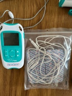 Tens-laitepaketti alkuperäispakkauksineen ja säilytyspusseineen. Itse laite erinomaisessa kunnossa (pelkkä laite ovh 70€). Ostettava uudet ihoon kiinnitettävät elektrodit, saa mm. Amazonista kympillä.