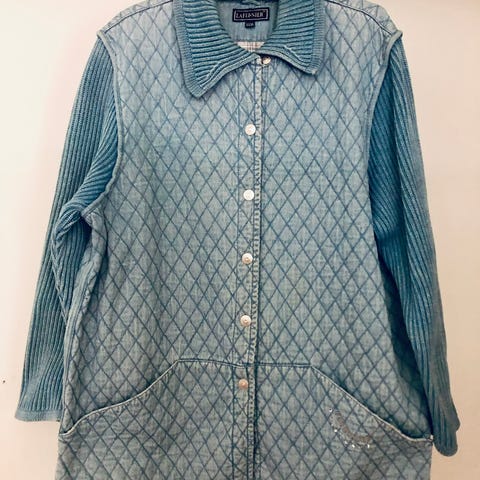 Harvinaisuus tarjolla - vintage tikkitakki / barn jacket. Kuka ei ole tikkitakkia kokeillut ei ymmärrä kuinka helppo ja rento vaate se on - helppo vetäistä päälle vaikka koiraa lenkittäessä, toisaalta huoleton ja helppo pitää puhtaana jne. Hyvin trendikäs. Tässä takissa kelpo vintage kunto - jotain langankatkeamisia saattaa olla, samoin värisävyeroja vihertävästä rusehtavaan. Yleisilme kuitenkin erittäin ok omaan silmään. Kuvissa kuitenkin kamera tekee isot läikät muutamassa kuvassa, takissa ei oikeasti ole sellaisia.