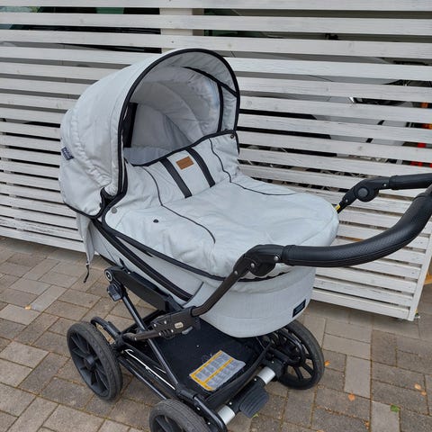 Siisti Emmaljungan yhdistelmävaunu. Lukittavat eturenkaat. Ratasistuin asetettavissa kahteen suuntaan. Runko-osan saa laitettua kasaan. Yksi eturengas ja yksi takarengas uusittu.