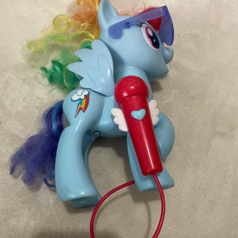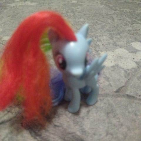 Rainbow Dash figuuri, joka liikkuu rullalla eteenpäin.