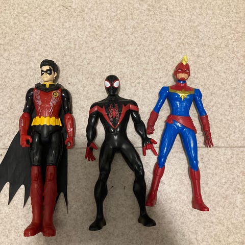 Toy Biz valmistamat spider-man lelut vuodelta 1998. Kunto on hyvä, mutta maali on kulunut hieman.