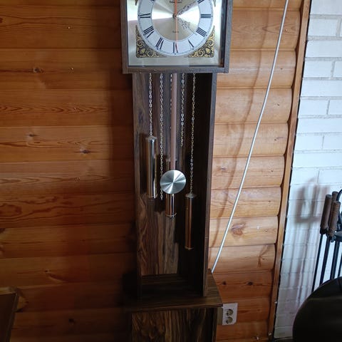 Myydään hienokuntoinen ja täysin kunnossa oleva kaappikello. Kaappikello on käsityönä tehty ja teetetty.