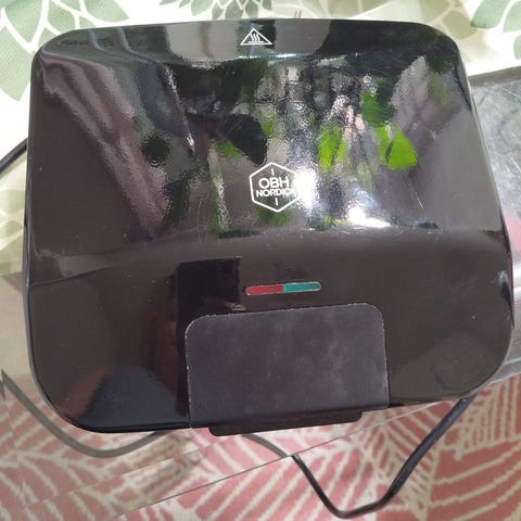 OBH Nordican punainen voileipägrilli. Pari naarmua pinnassa mutta toimi kuten pitää. Töpseli seinään vaan ja grillaamaan! Nouto ja mieluummin käteismaksulla.
