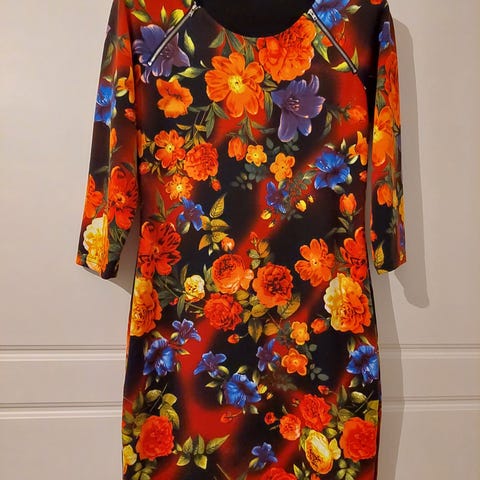 Smashed Lemon -merkin käyttämätön, hihaton mekko. Takana vetoketju. Vuori joustavaa kangasta. Päälimateriaali joustaa: 95%polyester, 5% spandex. Kai-kai 54cm, vyötärö 48, olka-helma 100cm.