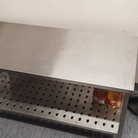 Iso rosteripöytä, laidassa muutama pieni reikä(kuvattu) koko:
