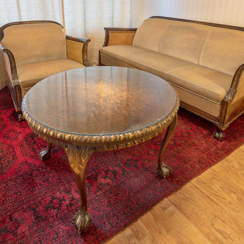 Chippendale-kalusto: sohvaryhmä, ruokaryhmä, apupöytä. Myydään mieluiten kokonaisuutena.