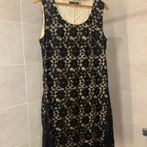 Kaunis ruskea pitkä juhlamekko johon kuuluu pitsijakku,