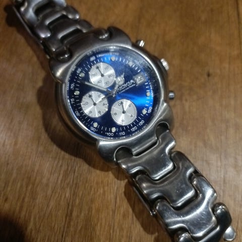 Myydään upea harvinainen klassikko Nokia rannekello 1990-luvulta. Tällä ei voi soittaa, eikä ottaa valokuvia, eikä se huomauta että aika nousta ylös, mutta kellon aikaa näyttää kunhan siihen vaihtaa ensin patterin ;o) Ranneke on alkuperäinen, aitoa nahkaa ja lasi hyvässä kunnossa. Osta itselle tai joululahjaksi. Nouto Kempele