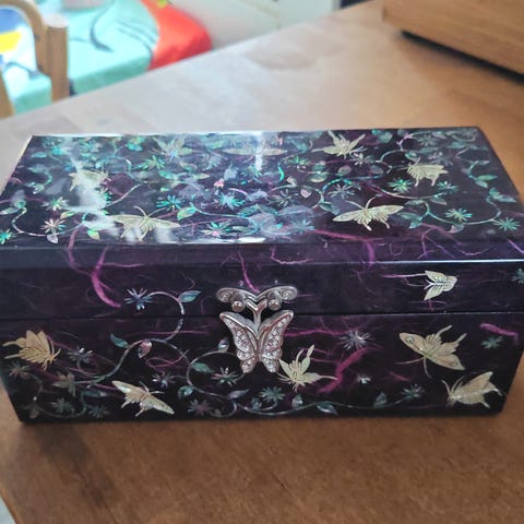 Viehättävä rasia alpakkaa ja helmiäistä: