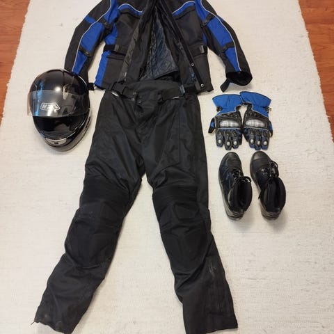 Puku 120€, saappaat 40€, kypärä 30€