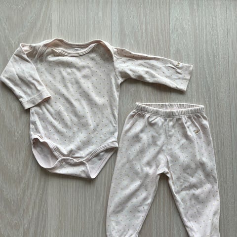 Meille uutena ostettu ja yhdellä lapsella käytetty vaaleanpunainen pody ja housut. Pesty hajusteettomalla. Ei lemmikkejä ja savuton talous.