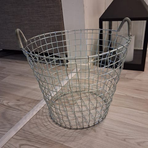 Metallinen häkkikori taipuu moneen tarkoitukseen esim. kukille, sipuleille ym.