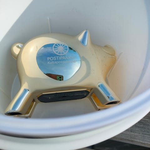 Sparebanken Hedmark Kookas Possupankki. Pit.28cm.,kork.20cm, ympärys 56cm. Hinta/tarjous.Voin tuoda lähialueille.