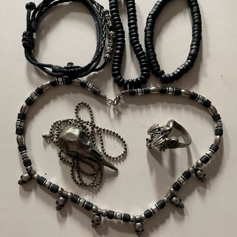 Myydään pääkalloaiheiset kaulakoru, rannekoru ja korvakorut settinä.