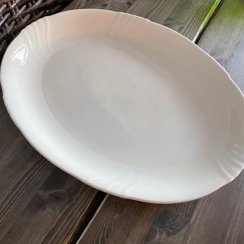Lautasen koko: pituus 31cm ja leveys leveimmältä kohdalta 22cm.