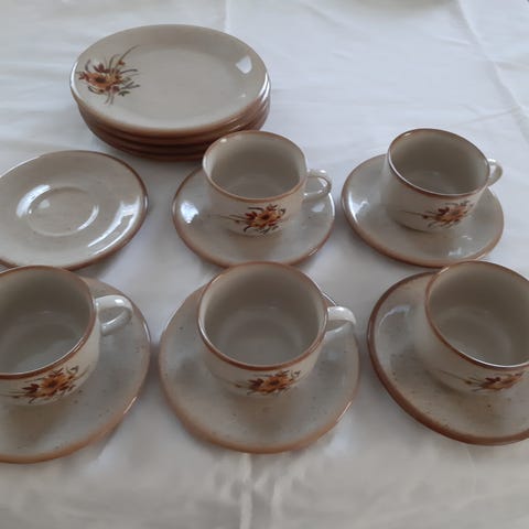 Viisi paria 60-luvun Upsala Ekeby Sweden Karlskrona 1013-107-2 kahvikuppeja. Kupit on virheettömiä, ollut kaapissa vain koristeena. Hinta 5€ kuppi ja tassi, koko sarja viisi paria 25€ + pakkaus ja postituskulut. Tassin halkaisija 13cm ja kupin korkeus/ halkaisija 60/ 65mm
