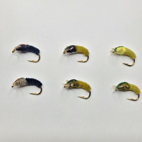 Chenille Caddis Uppoperhot 4kpl #10. Koukun koko: 10. Koukun pituus: 1,6cm. Kaarevat uppoperhokoukut. Runko: Chenille. Kilpi: Fasaani. Pää: Dupping. Tuntosarvet: Riikinkukko. Lyijytön painotus rungossa. Uudet/käyttämättömät. Perhot ovat minun itse tekemiä.