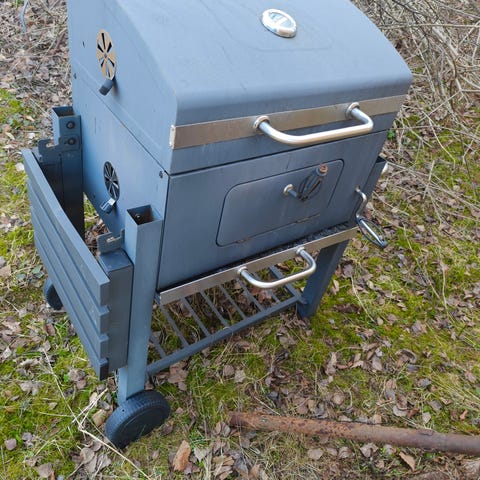 Myydään grilliaihion tarpeet. Savupiippu, luukku, grillin valettu pohja ja tiilet joista muuraamalla saa kokonaisuuden.