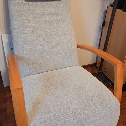 Erittäin mukava ja hyväkuntoinen mekaaninen nojatuoli myynnissä. Kankaassa ei ole mitään tahroja tai vastaavaa ja mekanismi toimii moitteettomasti eli jalkatuki nousee normaalisti.