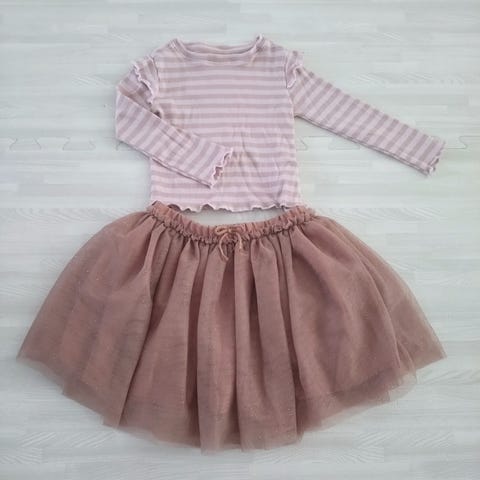 Vaaleanpunainen velour hame, kids m.o.s., koko 92/98. Helmassa kukkaköynnös-kirjailu. Hyvä käytetty kunto.