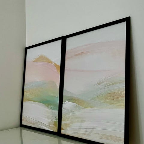Kaksi pientä maisemataulua hienoissa kehyksissä