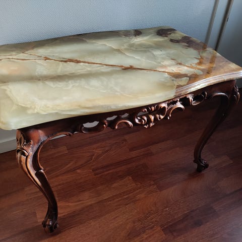 Kaunis, entisöity pöytä rokokoo-tyyliä.