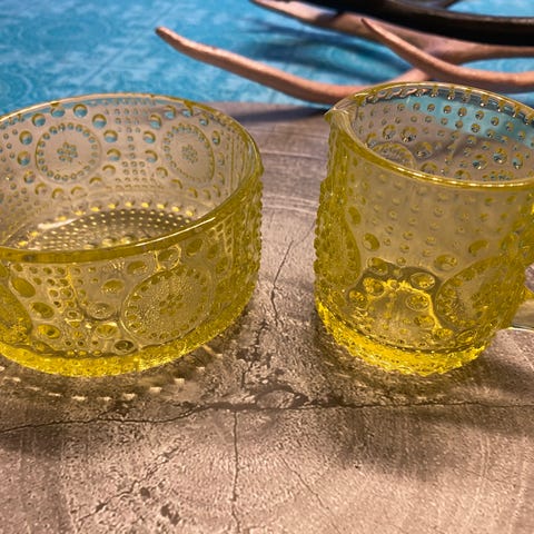 Kirkas kermakko. Lähinnä säilytetty vitriinissä. Ehjä ja siisti