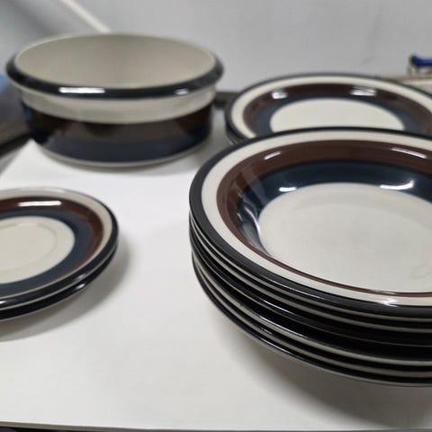 Arabian Reimari asetteja 6 kpl, kuppeja 4 kpl ja kahvikupin aluslautasia 7 kpl, vielä on käyttökelpoiset, jälkiä vähän, nämä yhteensä 20€. Sokerikko ja kermakko kuin uudet yht.25€. Suola- ja pippuri sirottimet, kuin uudet, yht. 20€.