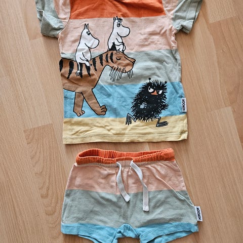 Muumi lasten paita, koko 74. Pitkähihainen paita, jossa raidallinen, kirjavan sävyinen kuosi ja Muumi-aiheinen kuvio edessä. Sopii unisex-käyttöön vauvalle tai taaperolle arkipaidaksi tai esimerkiksi päiväkotivaatteeksi.