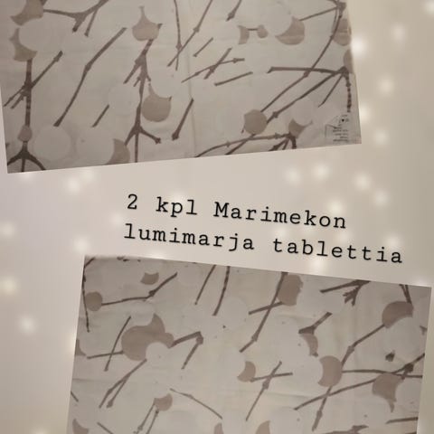 Kuusi kappaletta marimekon tabletteja. Kappale hinta 4 euroa.