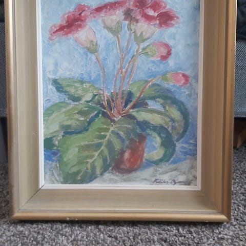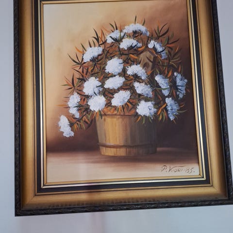 Myydään taulu Ruokolahden eukkoja kirkonmäellä. A. Kivelä 1993. Koko kehyksineen n. 52cm x 46cm.
