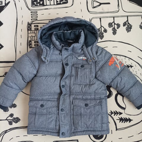 s.Oliver merkin hyväkuntoinen ja lämmin toppatakki koossa 110 cm. En löydä moitteita kunnossa. Huppu on irrotettavissa vetoketjulla ja hupun karva neppareilla. Väri siniseen taittava tummanharmaa, kuvan väri vääristää enemmän siniseen.